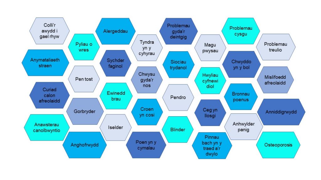 I 21% o’r rhai sy’n mynd trwy’r menopos, poen yn y cymalau fydd eu prif symptom. Mae Osteoporosis (yr esgyrn yn gwanhau) a sarcopenia (colli màs a chryfder y cyhyrau) hefyd yn gyflyrau cyffredin iawn sy’n gysylltiedig â’r menopos, sydd â goblygiadau ehangach ar ein hiechyd.